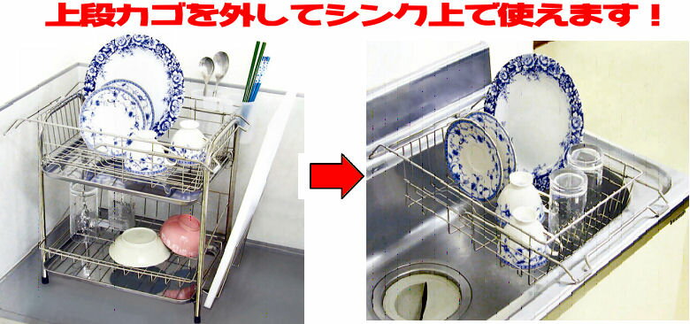 (おすすめポイント) 上段カゴが取り外し可能な、 ベーシックタイプの2段水切りラック。