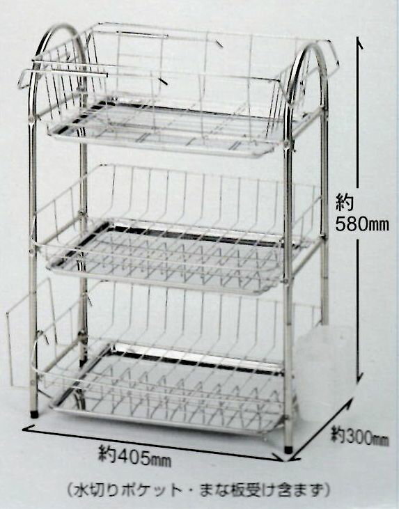 (おすすめポイント) オフィスの給湯室などにもお薦め! 大容量3段タイプの水切りラック。