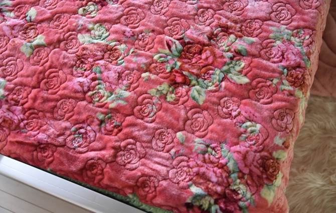 心地良い肌触り キルト マルチカバー レッドローズ かわいい雑貨シリーズ なるべく実物に近い状態で撮影していますが、 お色味は、赤色よりのピンクです。