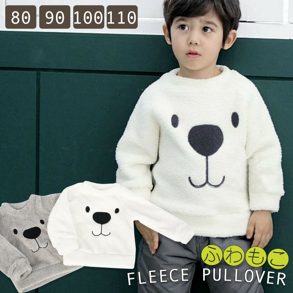 送料無料フリーストレーナー ボアトレーナー 長袖 プルオーバー ラウンドネック もこもこ 子供用 キッズ トップス 丸首 丸襟 アニマルフェイス 防寒 寒さ対策 暖かい あったかい 可愛い かわいい 女の子 男の子 女児 男児 子供服 子ども服 こども服